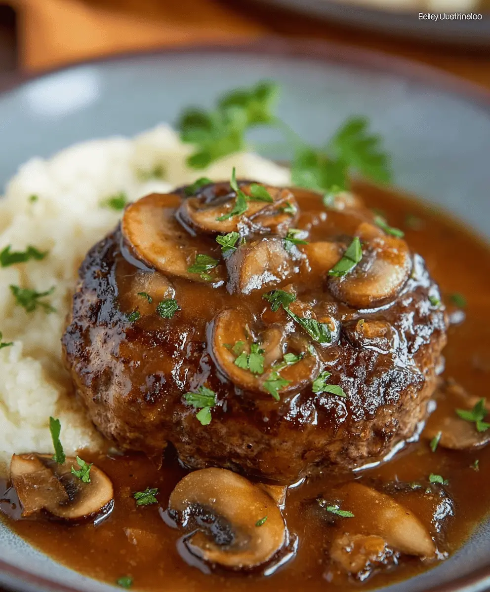 Once the steaks are heated and the gravy is nice and thick, serve them hot. Pair them with creamy mashed potatoes or fluffy rice, pouring some extra gravy on top. Enjoy your comforting homemade Salisbury steaks!